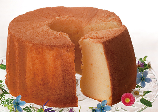 - 5. 4を型に流し入れ、最後にトントンとたたいて空気抜きをし、で180℃に予熱したオーブンで30分焼く。焼き上がったらすぐ逆さにして完全に冷まし、型から外す。