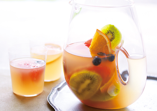 ピッチャーにカットしたお好みのフルーツを入れ、飲む酢ゆず100mlと白ワイン400mlを注ぎます。水割りにすればノンアルコールでもお楽しみいただけます。