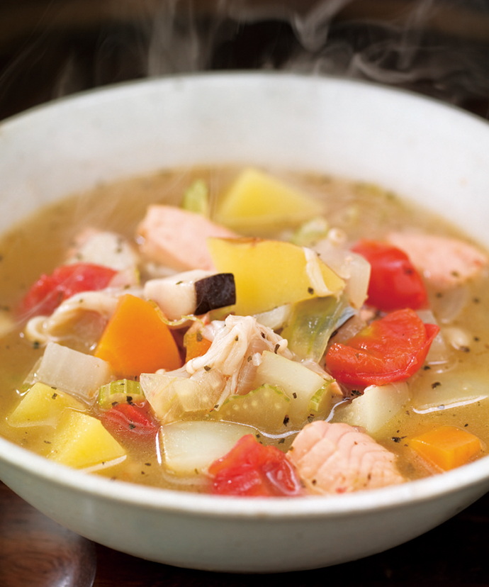 バジルとガーリックのソルトで、たちまちイタリア風。オリーブ油にチーズ、レモンと香り豊かな一皿です。