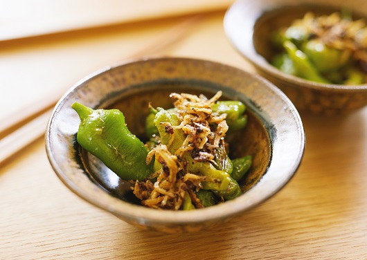 ピリッと効いた生七味が食欲をそそる、ししとうとじゃこの炒め物です。