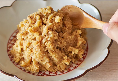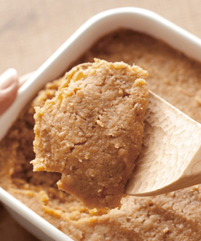 米麹と麦麹を使用した中甘口のお味噌。豊かなコクとまろやかさが特長です。