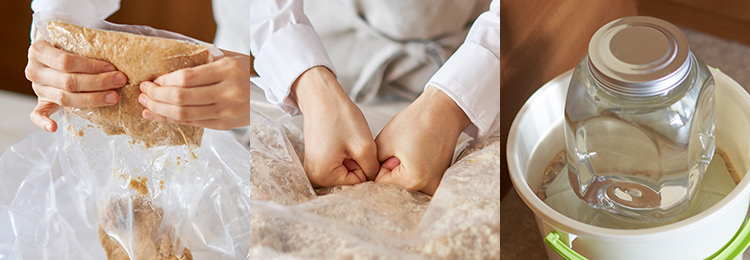 人気の味噌づくり教室から生まれた、評判の手づくり味噌キットです。混ぜる、捏ねる、寝かすだけの簡単3ステップで、おいしい味噌をご自宅でもおつくりいただけます。