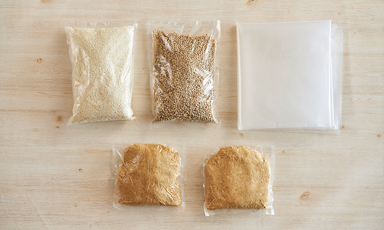 内容量:米こうじ(塩入り)825g、麦こうじ(塩入り)550g、蒸煮すり大豆(塩入り)1,100g、捏ね・保存袋