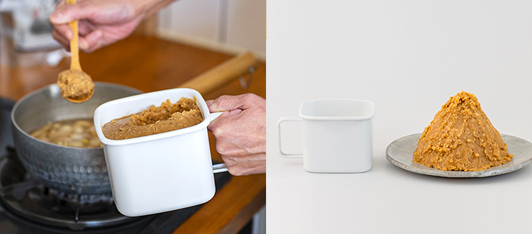 野田琺瑯(ほうろう)製持ち手付味噌ストッカー