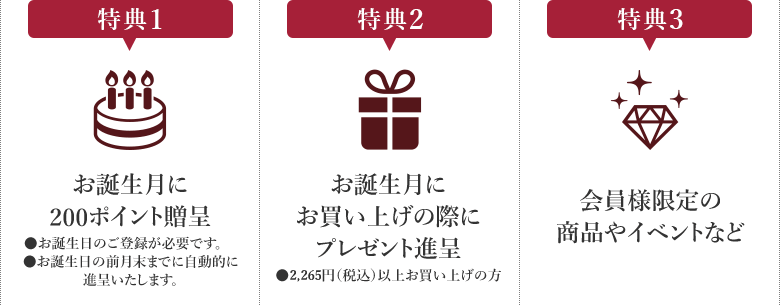 - ※お誕生日ポイントについて、入会時期によって付与時期がそれぞれ異なります。