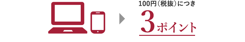 通信販売・店舗でのお買い物100円(税抜)につき、3ポイントが貯まります。