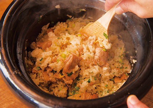 - 【B】で千切りにした生姜は、炊き込む前に塩をふってしばらくおくと、水けとともにえぐみが抜けて、ごはんが上品に仕上がります。