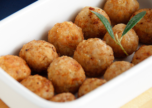 - ボウルに鶏ひき肉と袋を破った減塩 野菜だしを合わせ、粘りが出るまでよく混ぜたら、1と水を加えてさらに混ぜ、一口大に丸める。