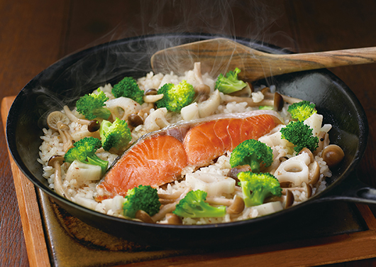- フライパンにおまかせで20分。生米を炒めて作るので、芯までだしのうまみがじっくり染み込みます。