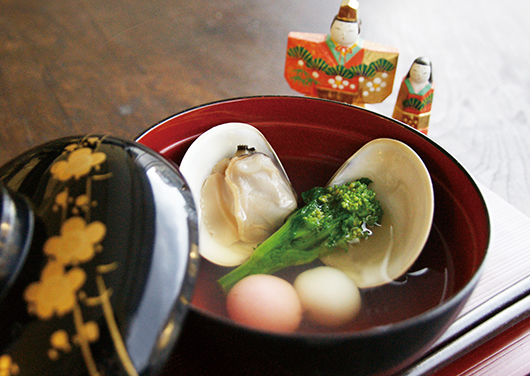 - 器に蛤、菜の花を盛り、汁をそそぐ。
