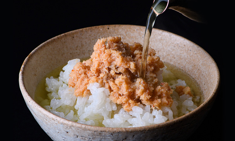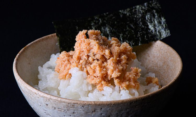 やわらかく手でほぐした鮭と、うまみ豊かなあごだしめんたいこを、特製のたれで合わせました。こだわったのは、なめらかな舌触り。とろけるおいしさをご堪能ください。