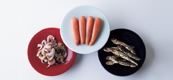 辛みだけでなくうまみがしっかりとある辛子めんたいこと、味に深みをもたせる焼きあごを生地に練り込みました。濃厚で甘味がある味わいが特徴の赤えびもふんだんに使用しています。