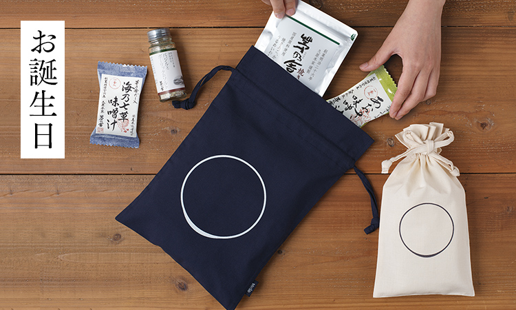 お客様ご自身でお好みの商品を組み合わせ、贈り物にできるきんちゃくをおつくりしました。シンプルなデザインと普段づかいしやすいサイズで、受け取った後も小物入れとして繰り返しお使いいただけます。