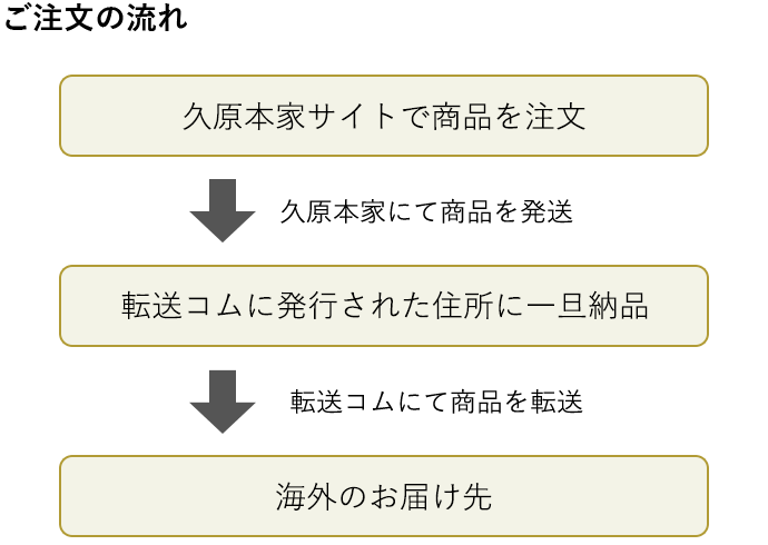 久原本家商品をお客様ご本人個人で使用することを目的に購入、海外転送いただくことになります。ご自身の責任で商品をお取り寄せください。
