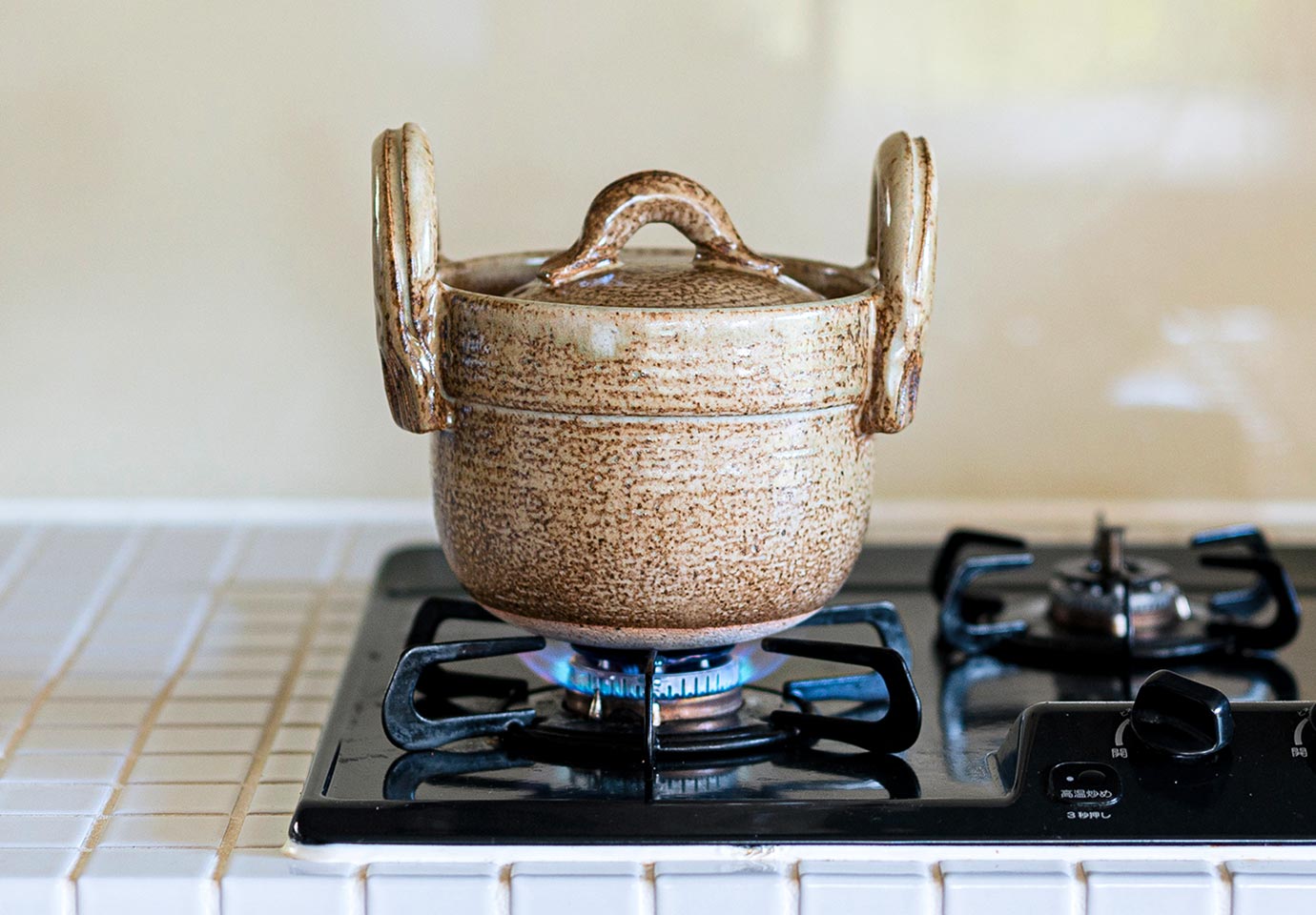 深さがある土鍋を火にかけると内部で大きな対流が起こり、ムラなくふっくら炊き上がります。吹きこぼれが少なく内蓋いらず。沸騰と共に吹き上がるうまみ成分たっぷりの泡が無駄にならず、拭き掃除や洗い物も減らせます。