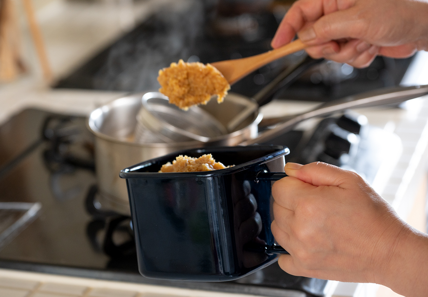だしを使ってつくる日々のお料理の中でも、いちばん欠かせないのがお味噌汁。最近はご家庭で、手作り味噌に挑戦される方も増えているようです。もし、味噌専用の保存容器があったら、もっと便利にここちよく日々のお料理をしていただけるのではと思いました。