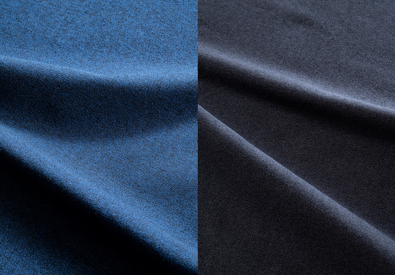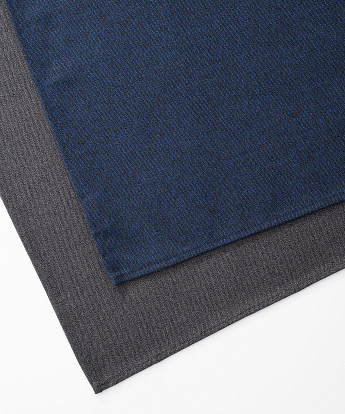 2色の糸を撚り合わせて織ることで、ほのかな霜降りが生まれます。紺は濃紺×黒の糸、灰は鼠×黒の糸を使用。洗う度に風合いが増すため、育てる楽しみも。年月とともに愛着が増していきます。