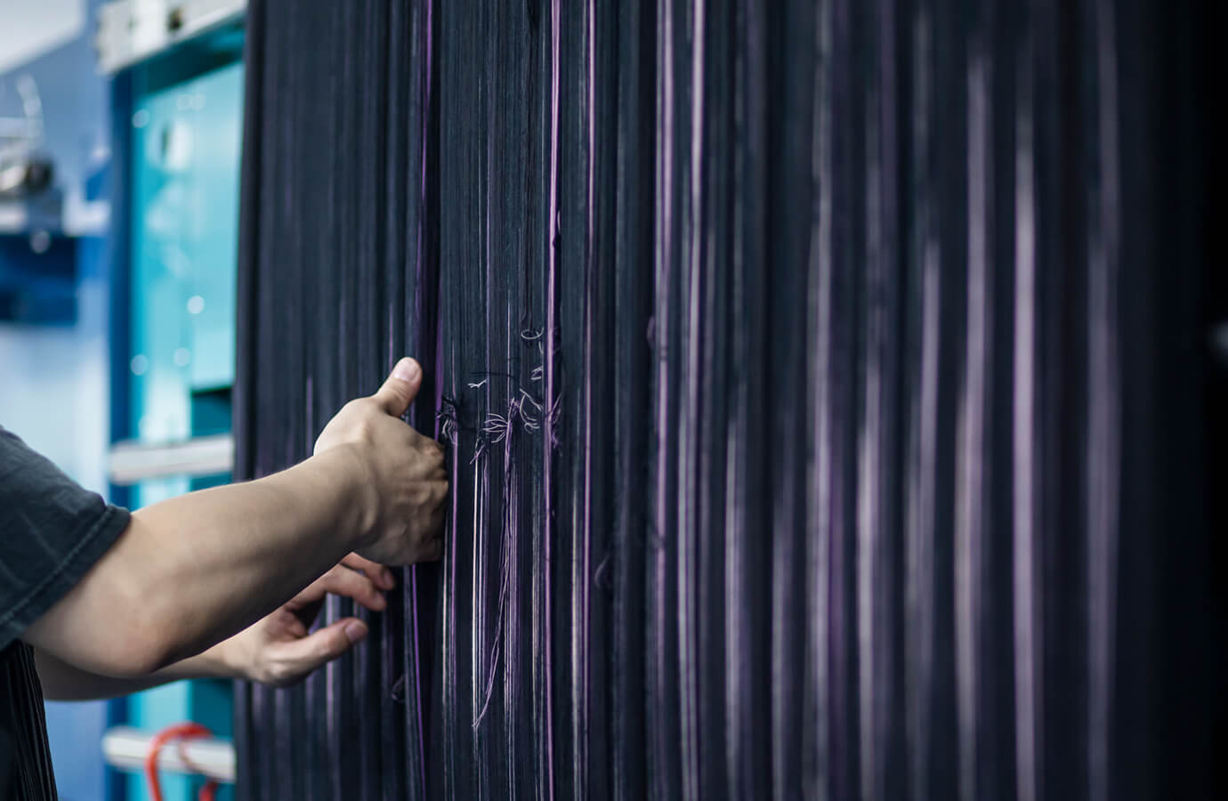 明治期になると柔らかで丈夫な「霜降小倉」が登場。学生服の生地として名を馳せ、夏目漱石や田山花袋の文学作品にも描写されました。時代の流れで途絶えていたところを染織家・築城則子さんが試行錯誤を重ねて復活を成しとげることに。その技術を受け、現代の感覚に合う小倉織の布製品や小物、バッグのブランド「小倉 縞縞」が誕生しました。