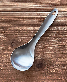 30年以上に渡り、キッチン用品を取り扱う東京の老舗道具問屋が、繰り返し検証を重ね、行き着いたデザイン。手に馴染み「すくう、混ぜる、返す」がかなうステンレス製のお玉です。煮物や炒め物など調理がしやすい形状で、そのまま盛り付けて使える便利なアイテムです。