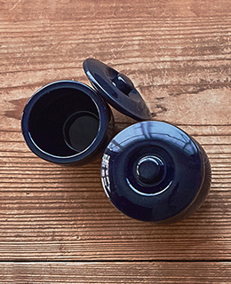 愛知県常滑市の山源陶苑の調味料壺。常滑の代表商品として、全盛期は複数の窯元で製造されていましたが、現在は1社のみ。砂糖や塩、漬物だけでなく、酸や塩分にも強いので、梅干しにも最適です。色やにおい移りも少なく、冷蔵保存もできます。そのまま食卓に出しても素敵なデザインです。