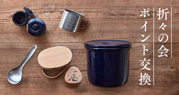 お貯めいただいたポイントを使って、ポイント交換限定の特別誂え品・茅乃舎ノ道具などの商品と交換いただけます。