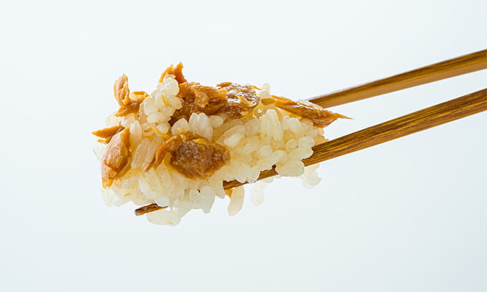 炊き上がった御飯(または電子レンジで温めた御飯)全体に本品を入れ、よく混ぜ合わせてください。全体をよく混ぜ合わせて、10分ほど味をなじませますと一層おいしくお召し上がりいただけます。