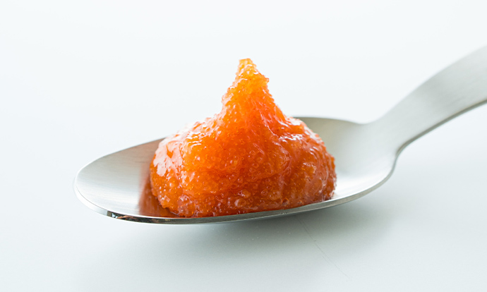 国産あごだし原料を使っためんたいこのうまみを引き立てるべく、かつおと昆布のうまみを合わせました。