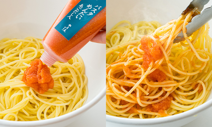 ゆでたパスタに和えるだけで、本場博多の味をご家庭で気軽にお楽しみいただけます。