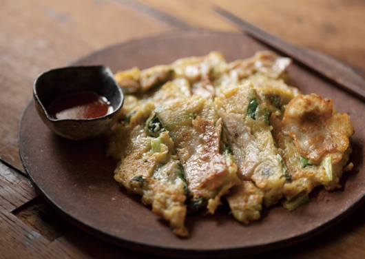 さつま芋のすりおろしを入れれば、秋らしいチヂミの出来上がり。こんがり焼いて、お好みで辛醤を添えていただきましょう。