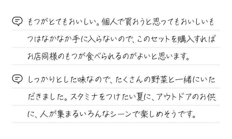 ※牛もつは中まで充分に加熱してお召し上がりください。