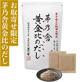 九州福岡が発祥の「茅乃舎」。地元で愛される“あごだし"は、お正月に食べる「博多雑煮」のだしにも使われています。雑味がなく、澄んだ上品な“あごだし"。そのおいしさを、全国の方に知ってもらいたい、九州の食文化をお伝えしたいという思いで、茅乃舎は“あご"にこだわり続けています。