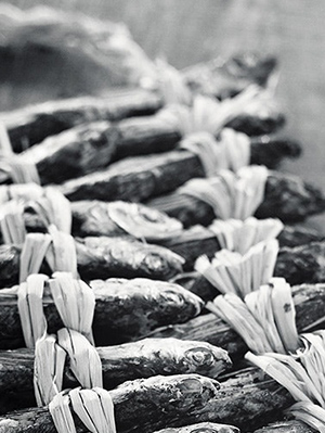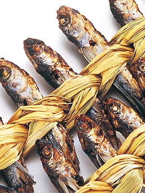 師走になると博多では、焼きあごを一尾ずつ藁で編みこんだものが出回ります。これが、鰤や丸餅、郷土野菜のかつお菜などを具材とした博多雑煮のだしとして使われてきました。今では、その上品なうまみが日常の料理にも使われ、私たちの食卓を楽しませてくれるようになりました。