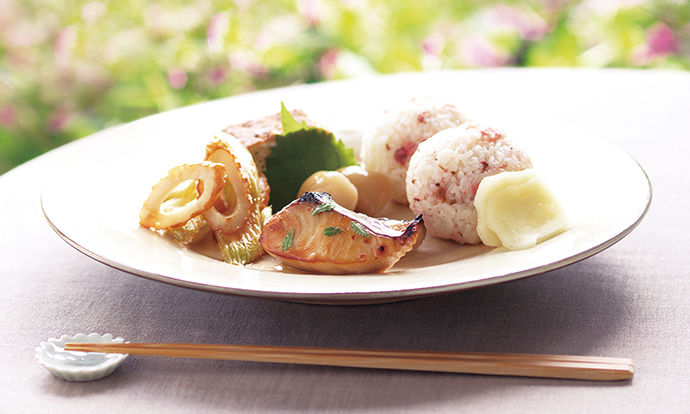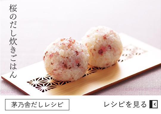 ふわっと春の香り。だし炊きごはんに桜の塩漬けを混ぜ込むだけで完成です。