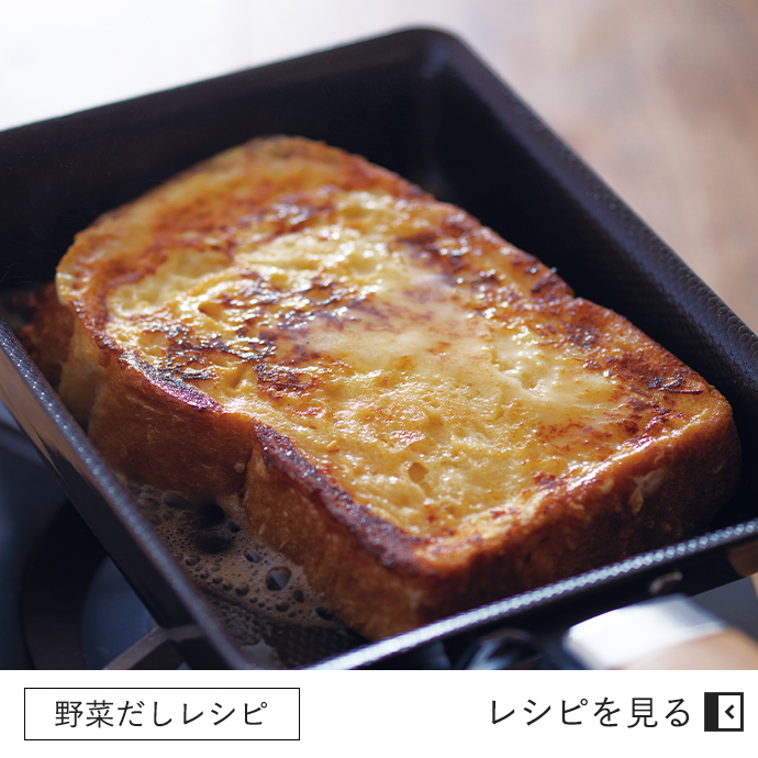 砂糖を使わずにつくる、甘くないフレンチトースト。材料もつくり方もとてもシンプル。野菜だしで味が決まります。