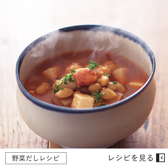 - 4. 1と豆乳を加えて弱火で煮て、沸騰直前で火を止める。