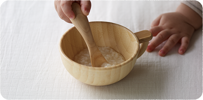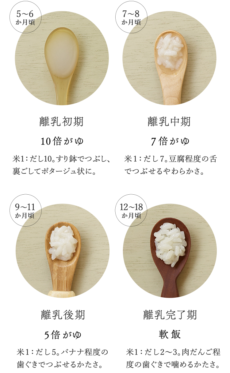 米と水で炊いたスプーン一杯のつぶしがゆから。
