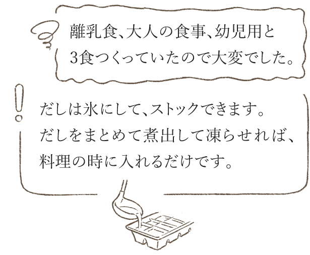 一度にまとめて煮出しておけば、だしは氷にして、ストックできます。