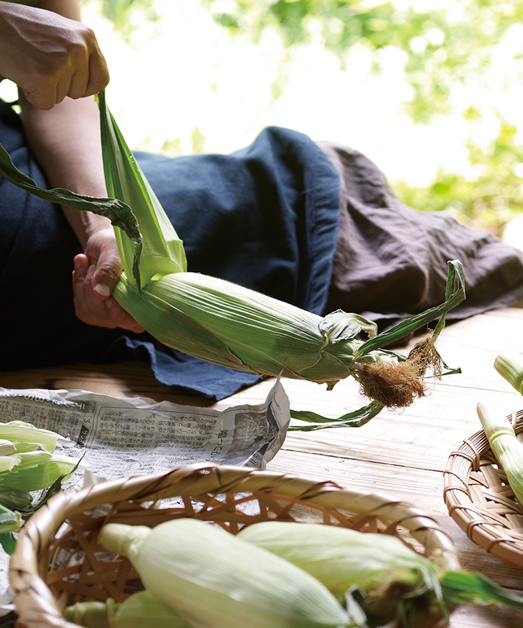 実が張った旬のとうもろこしは、沸騰する前に入れると、甘みと食感がほどよく仕上がります。そのまま食べる場合、1ℓに対して大1~2の塩が目安。茹でた後は粗熱がとれるまでそのまま浸しましょう。