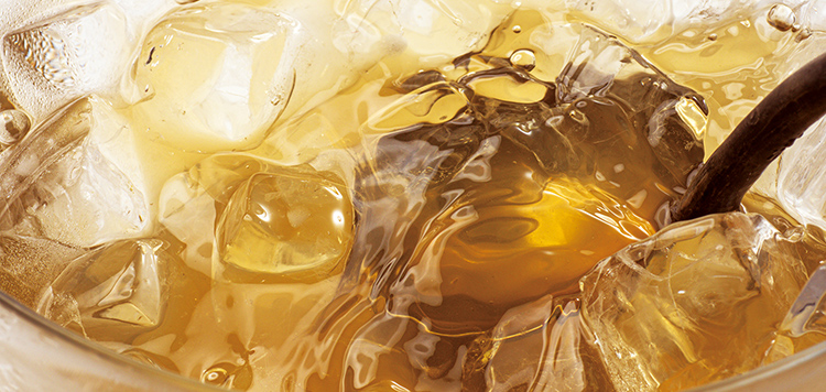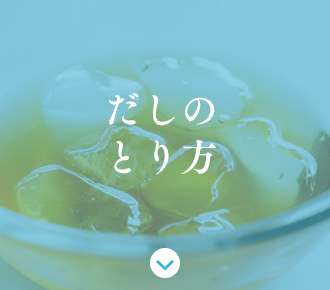 氷を入れてかき混ぜ、冷やすことで、だしの風味をそのままにしっかりとした味わいの冷たいだしがおいしく仕上がります。