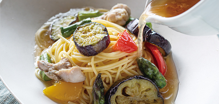 豊かな野菜のうまみにハーブやレモンの爽やかな香りが広がる夏の野菜だし。