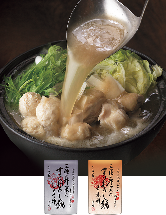 秋が深まり、風が冷たくなってきたら、いよいよ鍋の季節です。「茅乃舎」では今年も、冷えた体がぽかぽか温まるような、あったか鍋をそろえました。ひとりでも十分に楽しめるものから、ご家族でにぎやかに召し上がっていただけるものまで、ラインナップは大充実。鍋革命ともいうべき新作の3鍋もご用意いたしました。