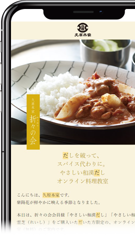 「久原本家だより」をご購読いただいているお客様限定に、オンラインでお料理教室のご案内をしております。