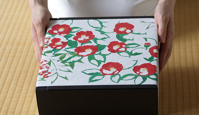 季節ごとに変わる「季節の掛け紙」もございます。 大切な方へ、メッセージカードもおつけいただけます。