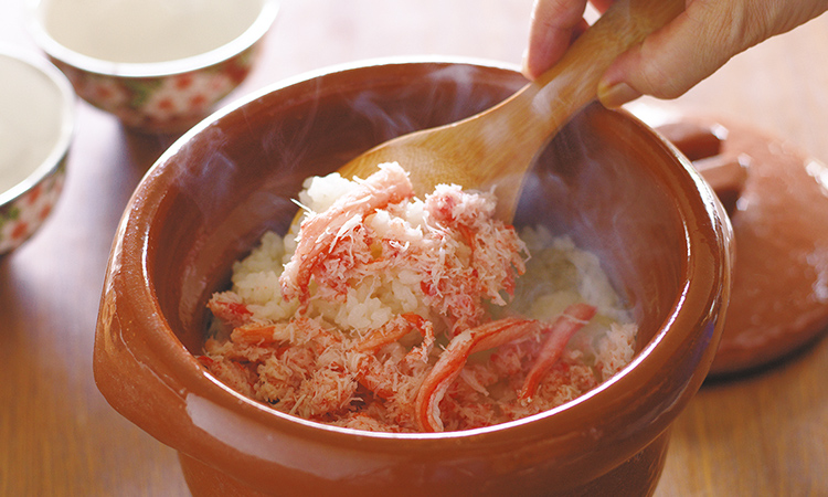 華やかにしつらえたい年末年始の食卓にぴったりなのが、だしで炊き上げる「贅沢かにめし」です。ぜひ、特別なご贈答品としてご用命くださいませ。