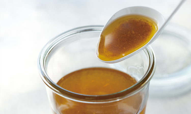 オイルの色が濃くなってきたら、うまみが十分にオイルにしみ出た合図。すぐに濡れ布巾などで鍋底を冷やし、粗熱をとる。