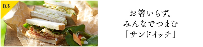 春のお出かけはお花見や運動会など、目で楽しむイベントが盛りだくさん。そんな時は、お箸いらずで、さっとパクっとつまめるサンドイッチが大活躍です。中身の具材も色々詰め込んで、みんなで選ぶ楽しさもひとしおです。