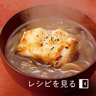 いつものお雑煮に飽きたら、ぜひお試しください。炒めた玉ねぎの甘み、だしのうま味、チーズのコク。食事としてはもちろん、お夜食やおやつ代わりにも最適です。