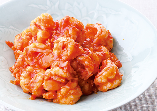 ケチャップを使わず、完熟トマトで作る、爽やか味の海老チリです。