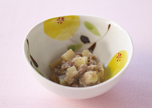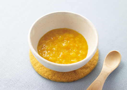 すりつぶしたり、水分量でかたさを調整したり、成長に合わせてつくりましょう。