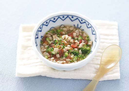 赤ちゃんが食事に慣れてきたら、米とだしで炊いただしがゆをお試しください。